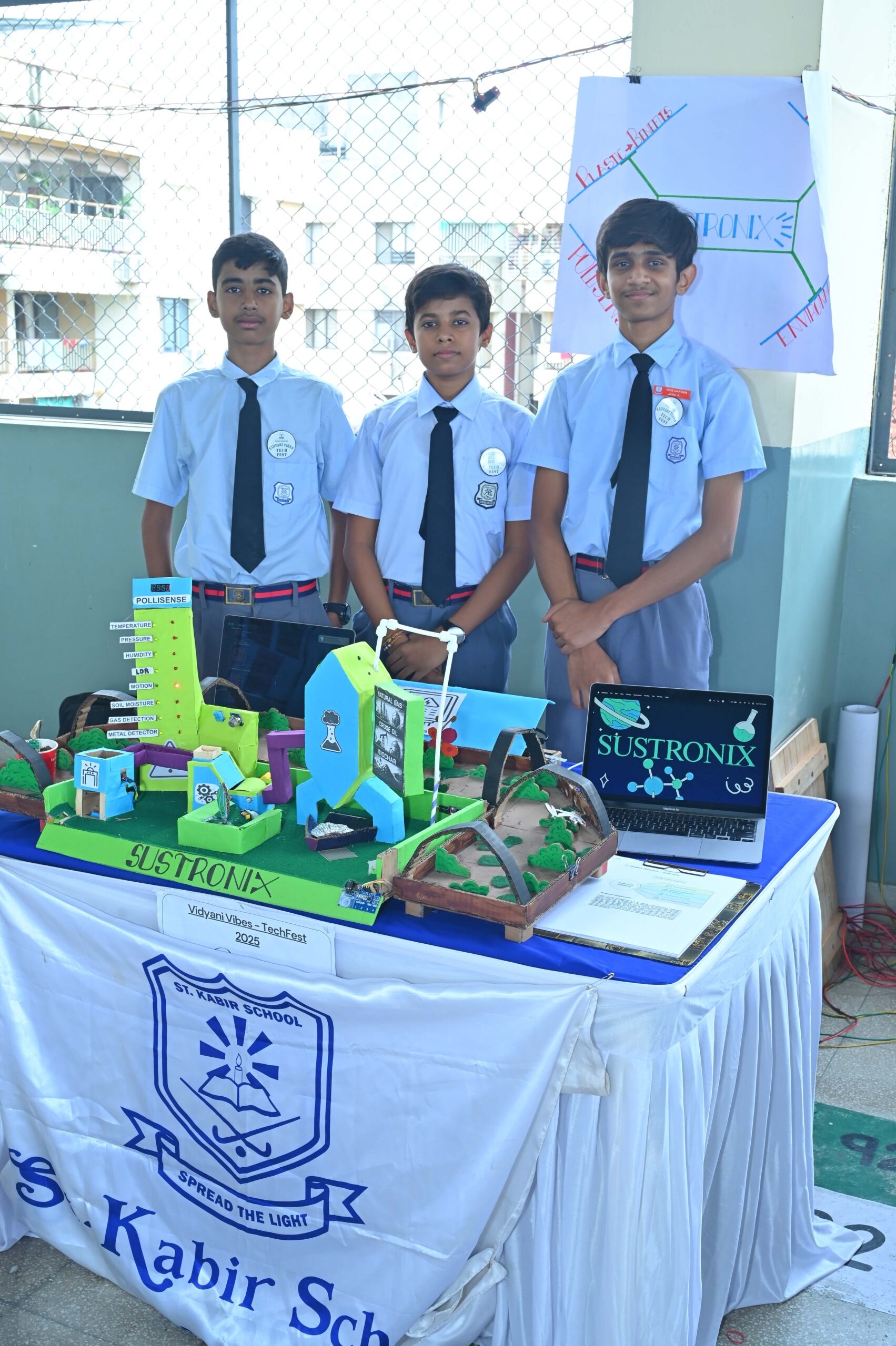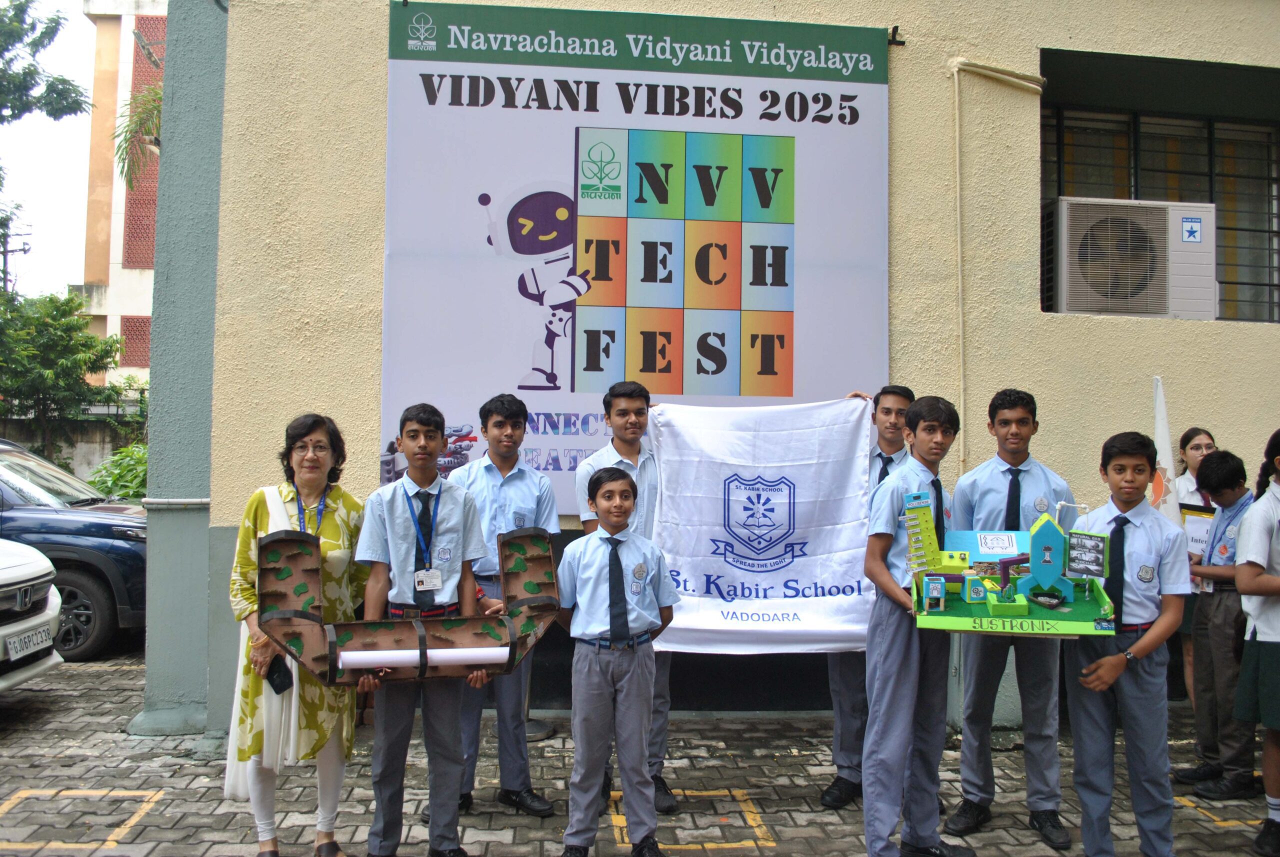 Vidyani Vibes tech fest was conducted in Vidyani School, Vadodara on 23rd Aud 2025. The tech fest had three categories 1) Pitch Your Dreams 2) Innovibe 3) Plaython and 33 schools of vadodara city participated in it. Eight students from our school participated in all the three categories. Our students Pushkar Patel, Shlok Chauhan and Vedant Parmar bagged second position in the category of Pitch your dreams. They were awarded the runner up team trophy and certificates. All the other participants were given consolation certificates.