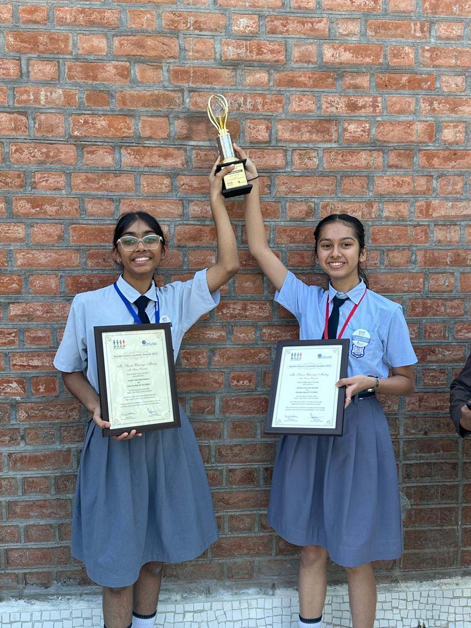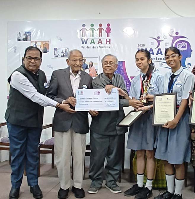 Saanvi & Swara of Std.8 won the WAAH Science Laureate Award in the Junior Category for their project presented at Vikram Sarabhai Science Center,Ahmedabad.